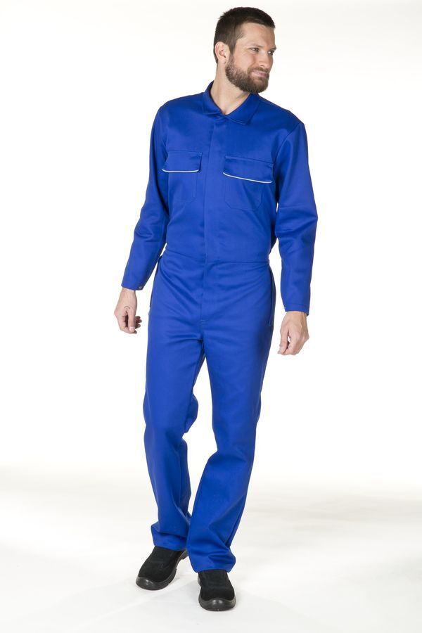 Combinaison ignifugée. Fermeture devant par grippers cachés sous patte. Poche poitrine et poches basses plaquées par rabat souligné d’un passepoil rétroréfléchissant à grippers cachés. Manches montées. Bas de manches avec renfort intérieur tissu, poignets réglables. Poche intérieure. 2 poches basses dans les coutures latérales. Poche arrière fermée par rabat grippers cachés. | E.J. : 82 cm.