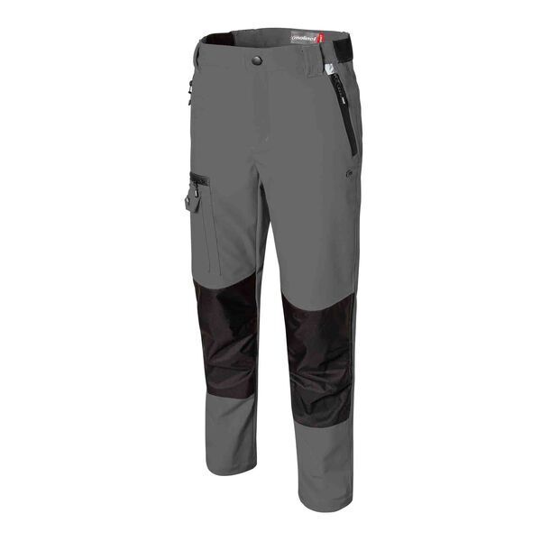 Pantalon softshell 3 couches stretch doublé à poches genouillères. Ceinture avec passants, élastiquée aux côtés et fermée par bouton. Braguette zippée. 2 poches italiennes fermées par zip étanche. Poche cuisse droite zippée avec poche smartphone et poche mètre à compartiments. Poches genouillères. Poche arrière fermée par zip étanche. Finition bas de jambes réglables par stoppeurs. | Détails rétroréfléchissants. Ripstop. Coupe ajustée. Imperméabilité et respirabilité 8000/3000. E.J. : 82 cm