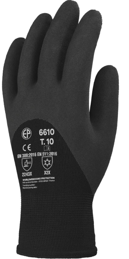 Gant EUROWINTER enduit mousse latex noir dos aéré